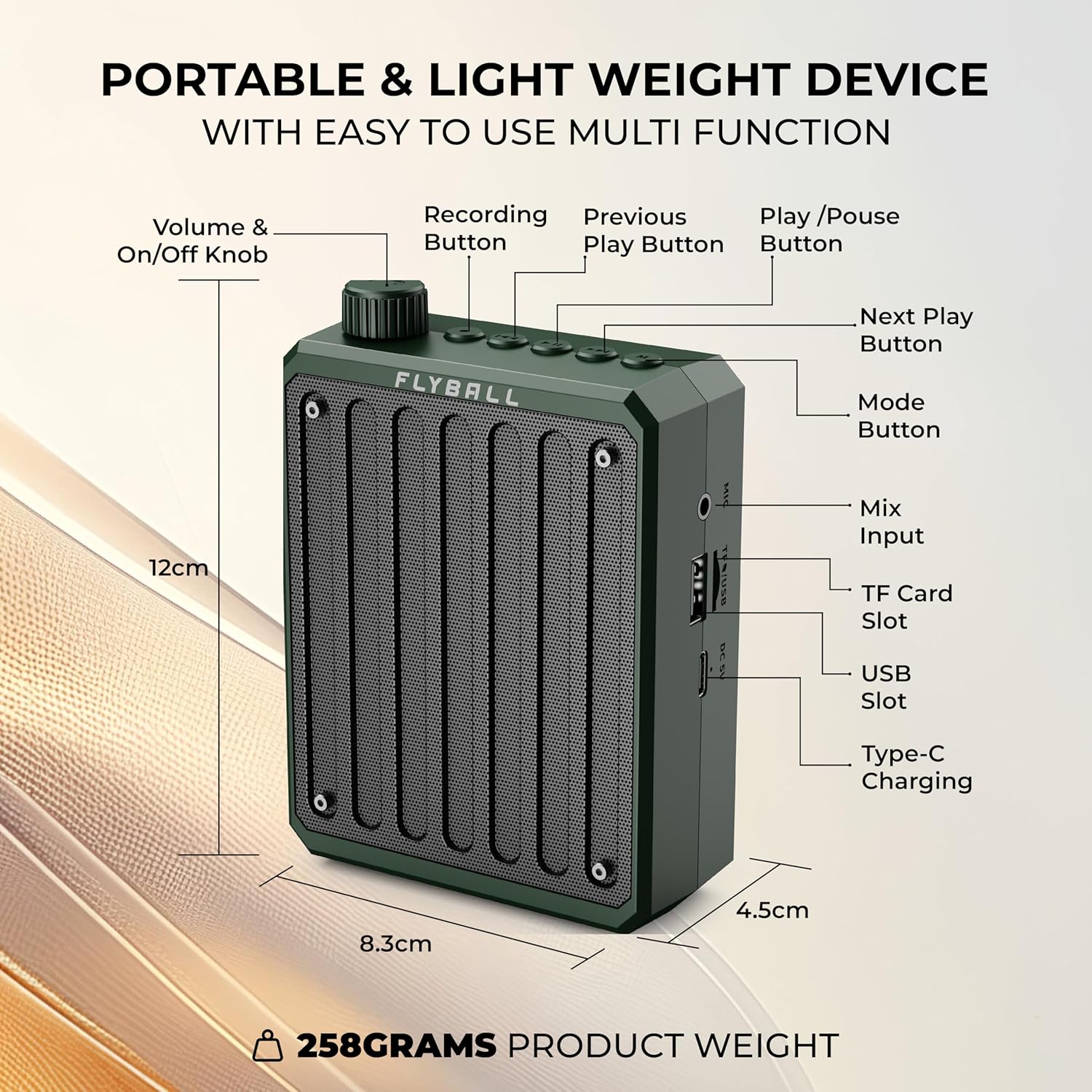 💾 USB / TF Card / AUX Playback – Allows to Play lectures, music & pre-recorded sessions from any input source easily.