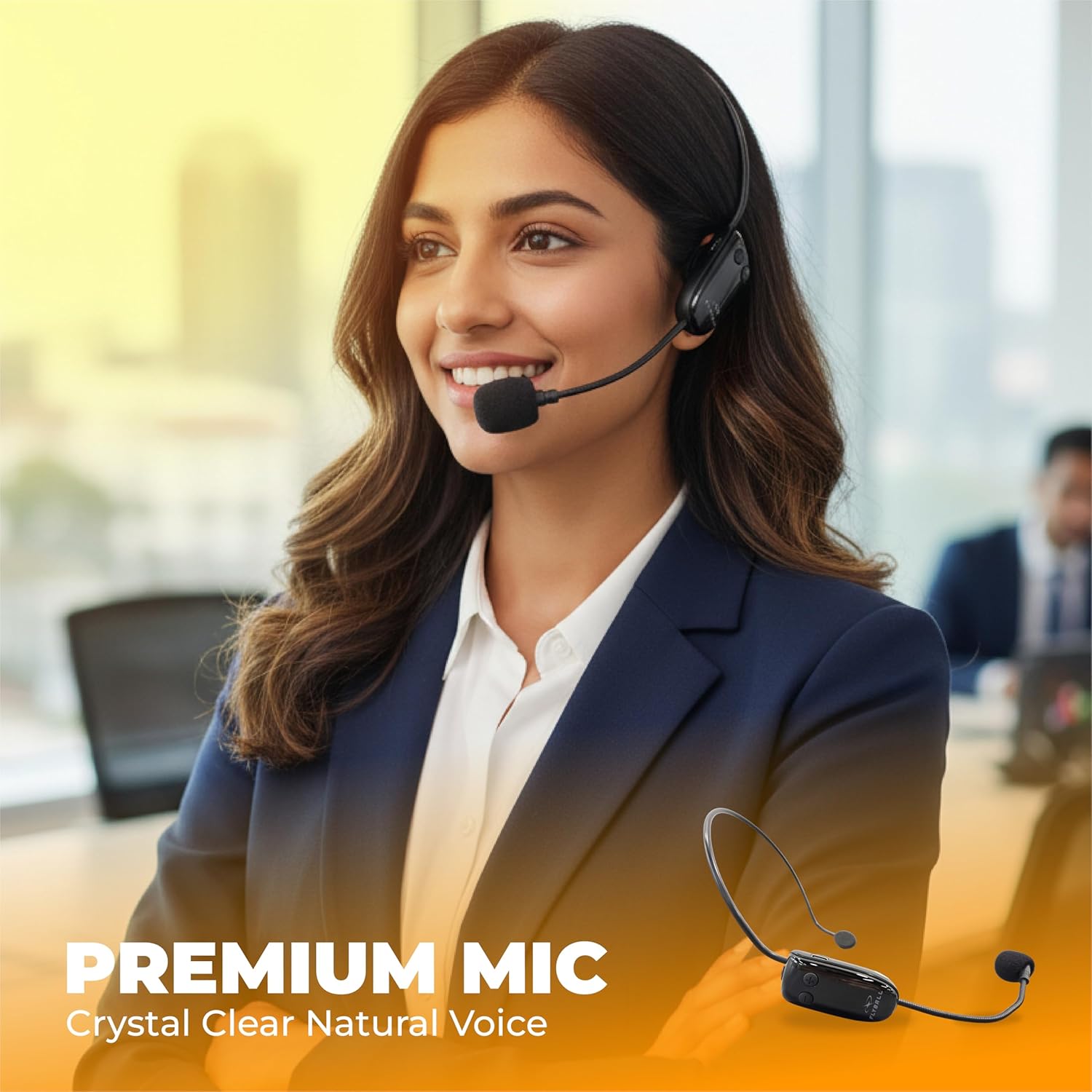 📦 Box Contains: 1 x Portable Voice Amplifier, 1 x Wireless Headset Microphone, 1 x waistband, 1 x USB Type-C Charging Cable, 1 x User Manual