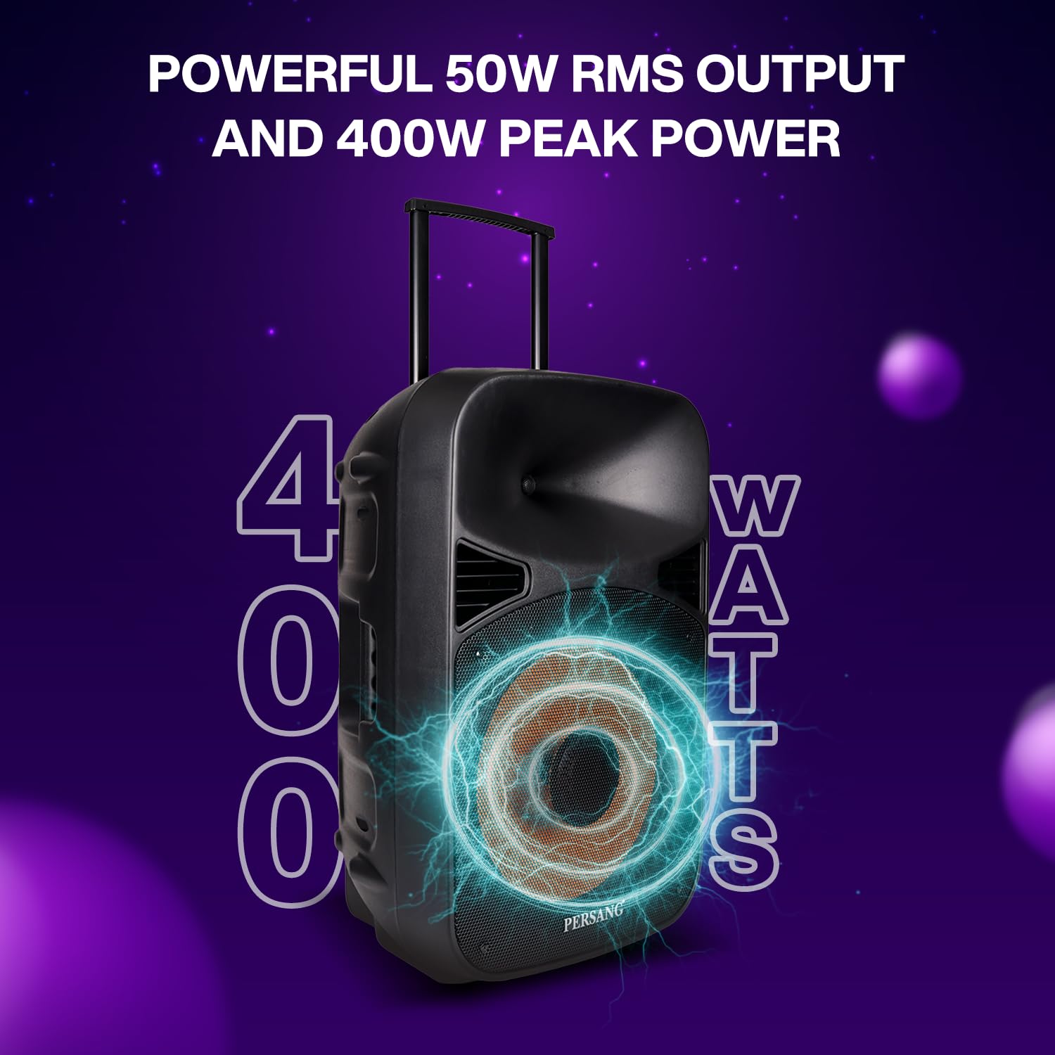 【50W RMS OUTPUT WITH 15” WOOFER】: Features a 38.01 cm woofer that delivers powerful, room-filling sound with deep bass—perfect for parties, events, or personal entertainment.