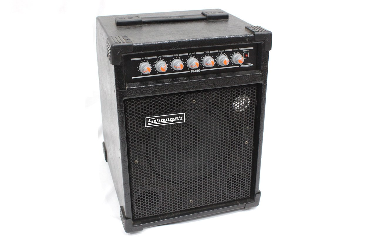 The Stranger PM40 amp is a great choice when you don’t need a ton of power, but you also don’t want to sacrifice tone. It gives you tone control options: Bass & Treble +10db. It also comes with a digital echo effect onboard. It also has a line out for more connections.