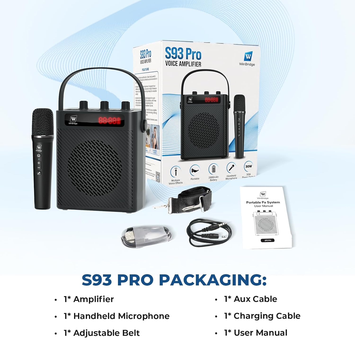 Lightweight & Portable Design — The S93 Pro personal speech amplifier weighs only 2.2 pounds, designed for on-the-go professionals. Its ultra-light build, soft-grip handle, and adjustable strap make it easy to carry and use for hours. Perfect for teachers, presenters, tour guides, and fitness coaches, the S93 Pro mini pa system is a reliable, portable solution for transitioning between indoor and outdoor spaces.
